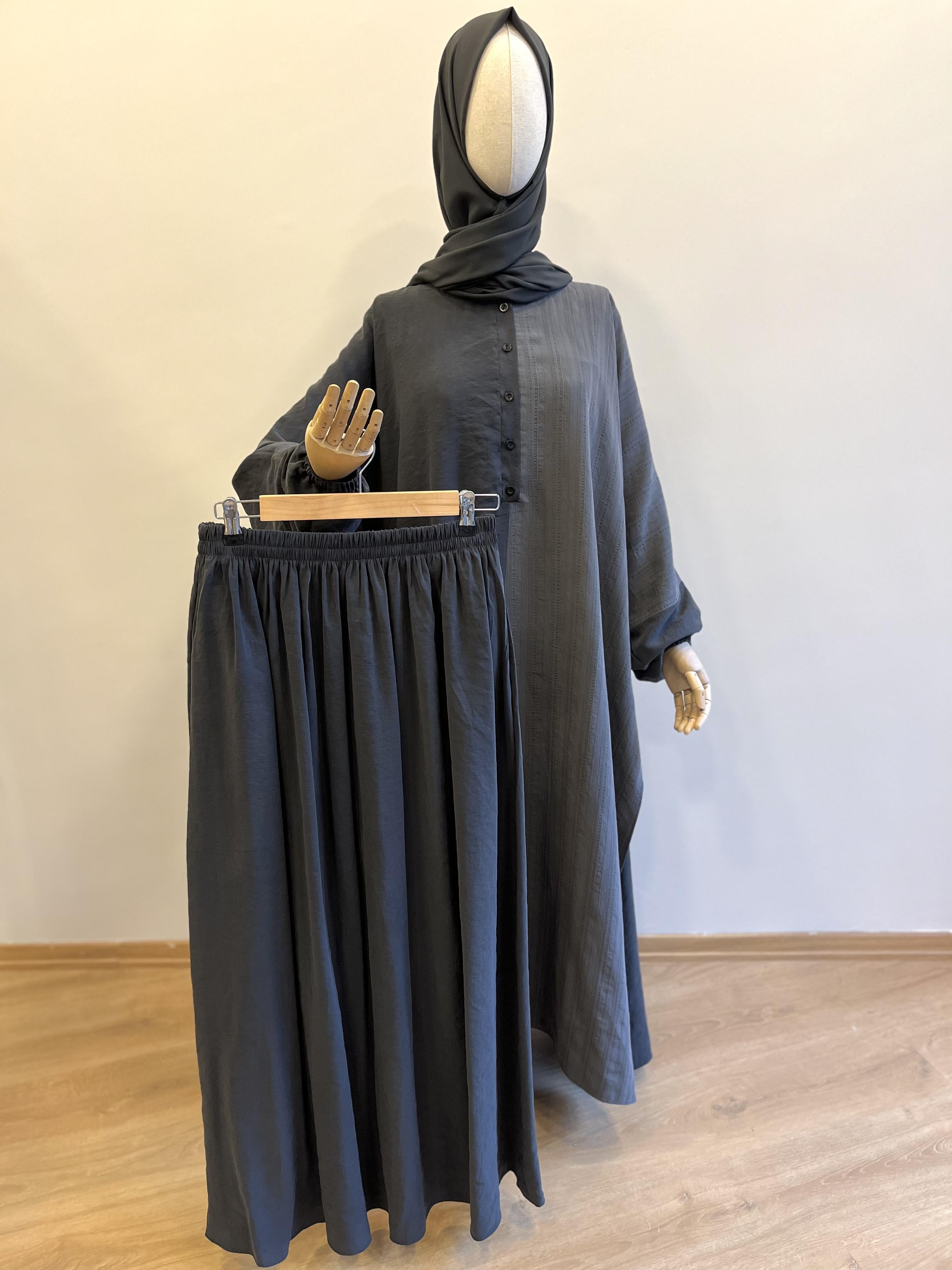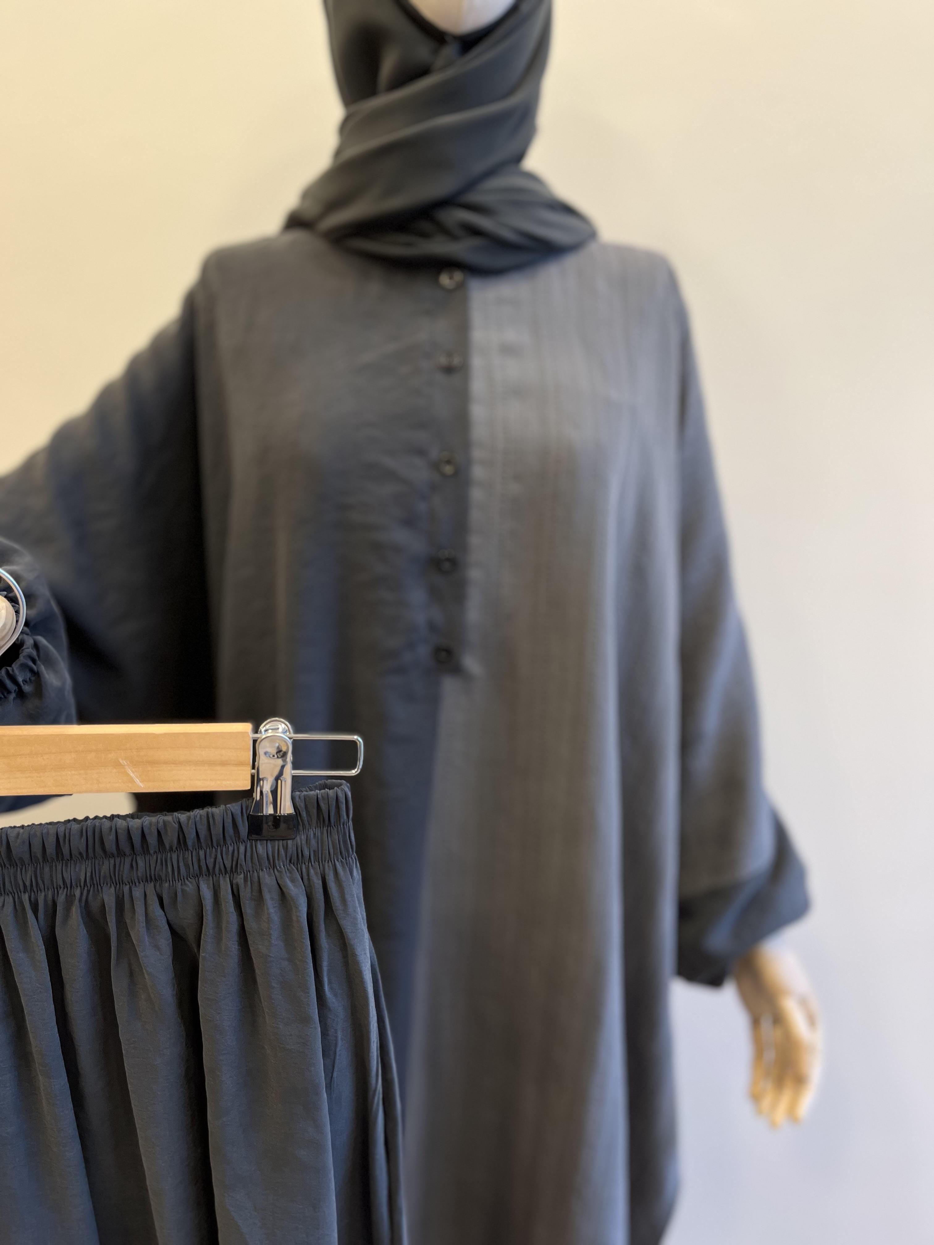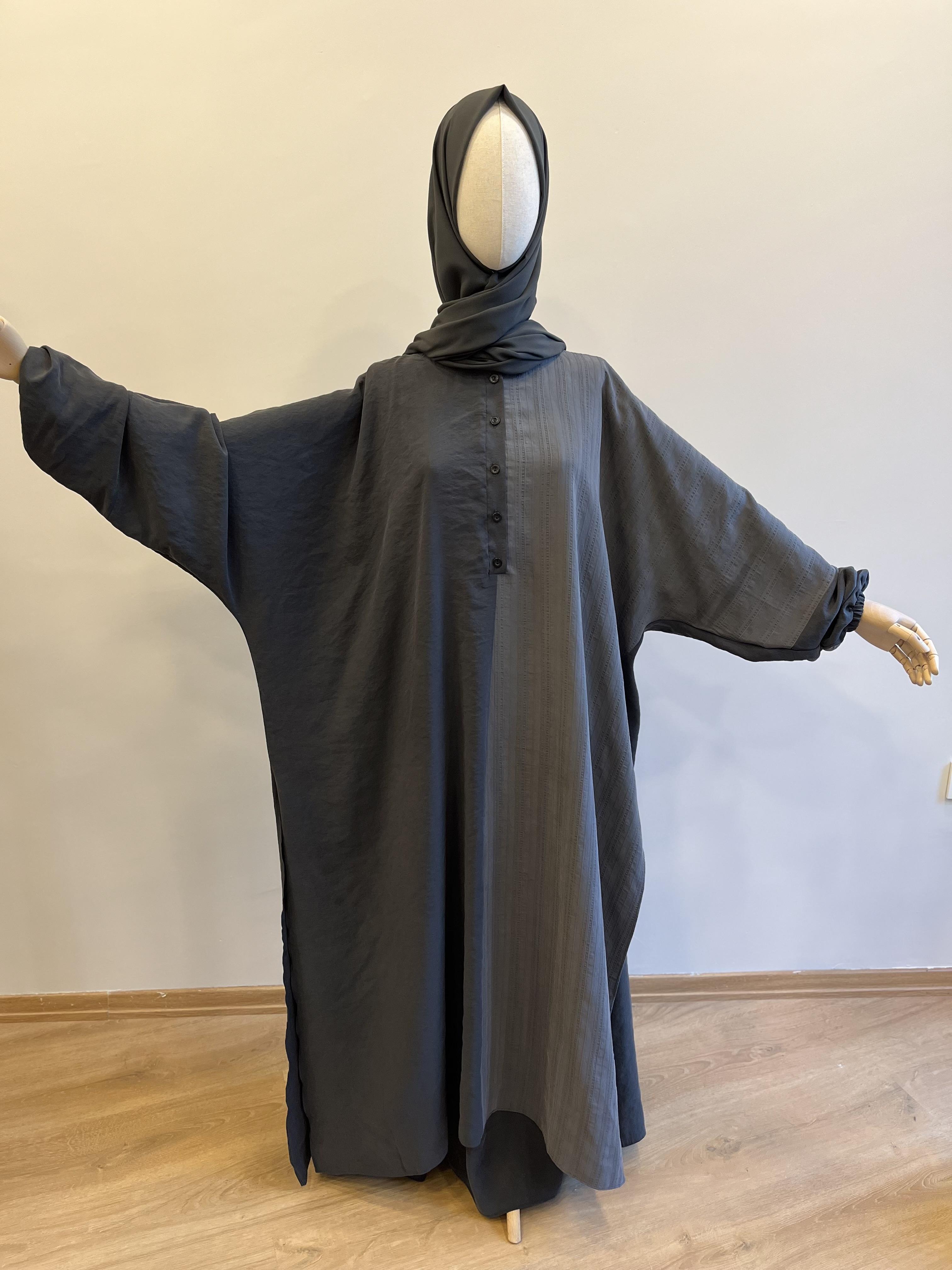 🌟 Lastik kol, yarım boy düğmeli ve yırtmaçlıdır.