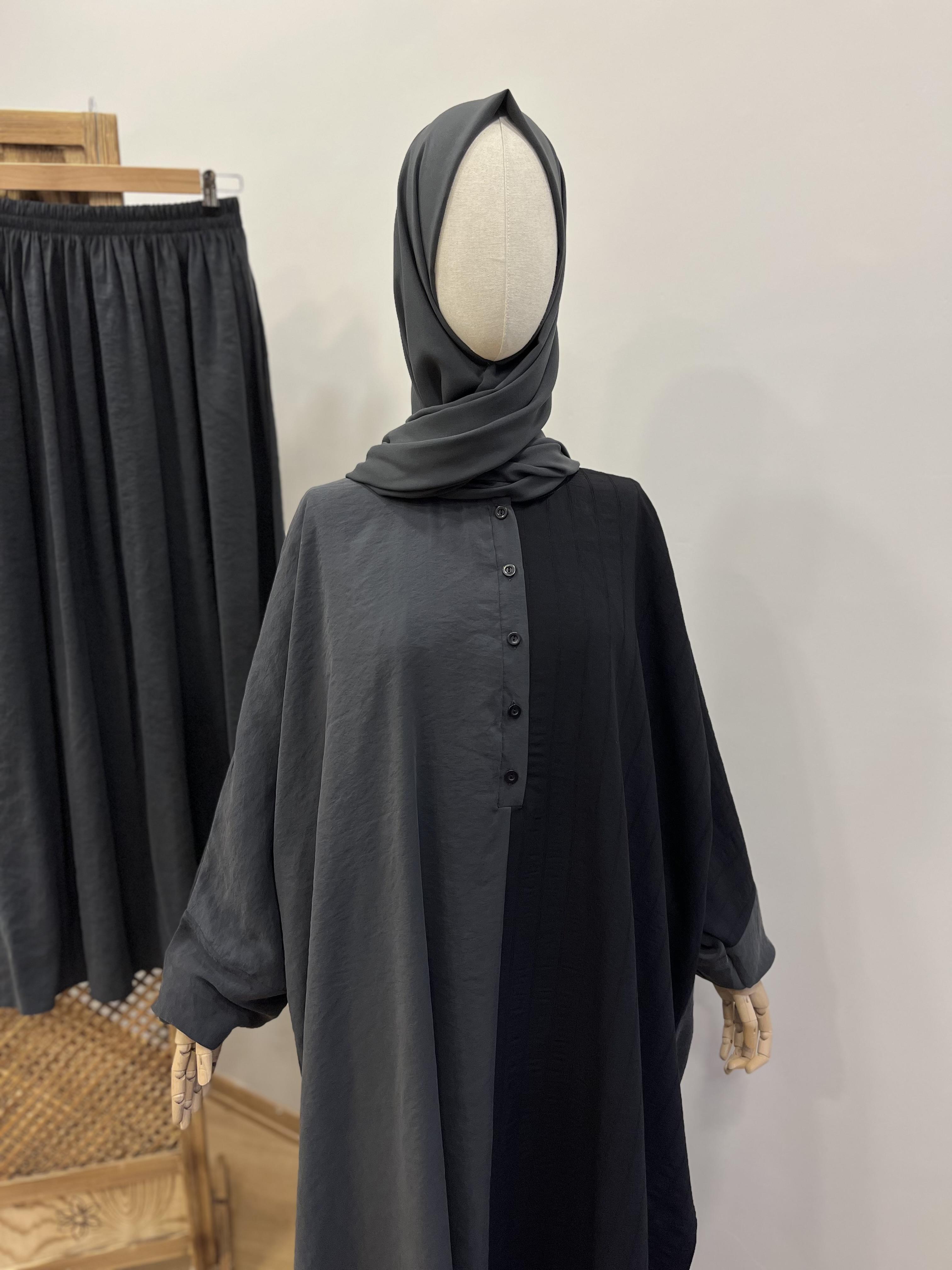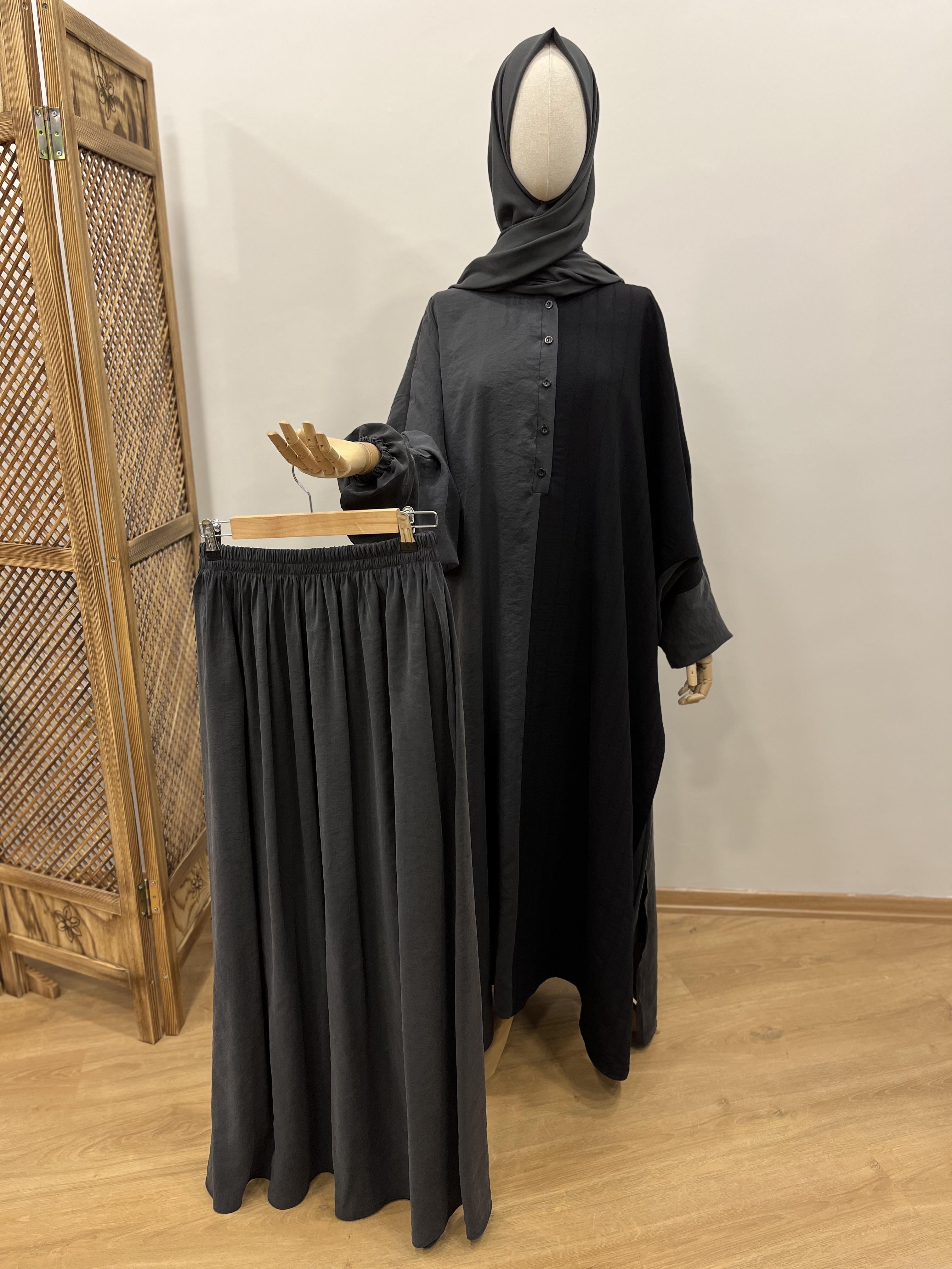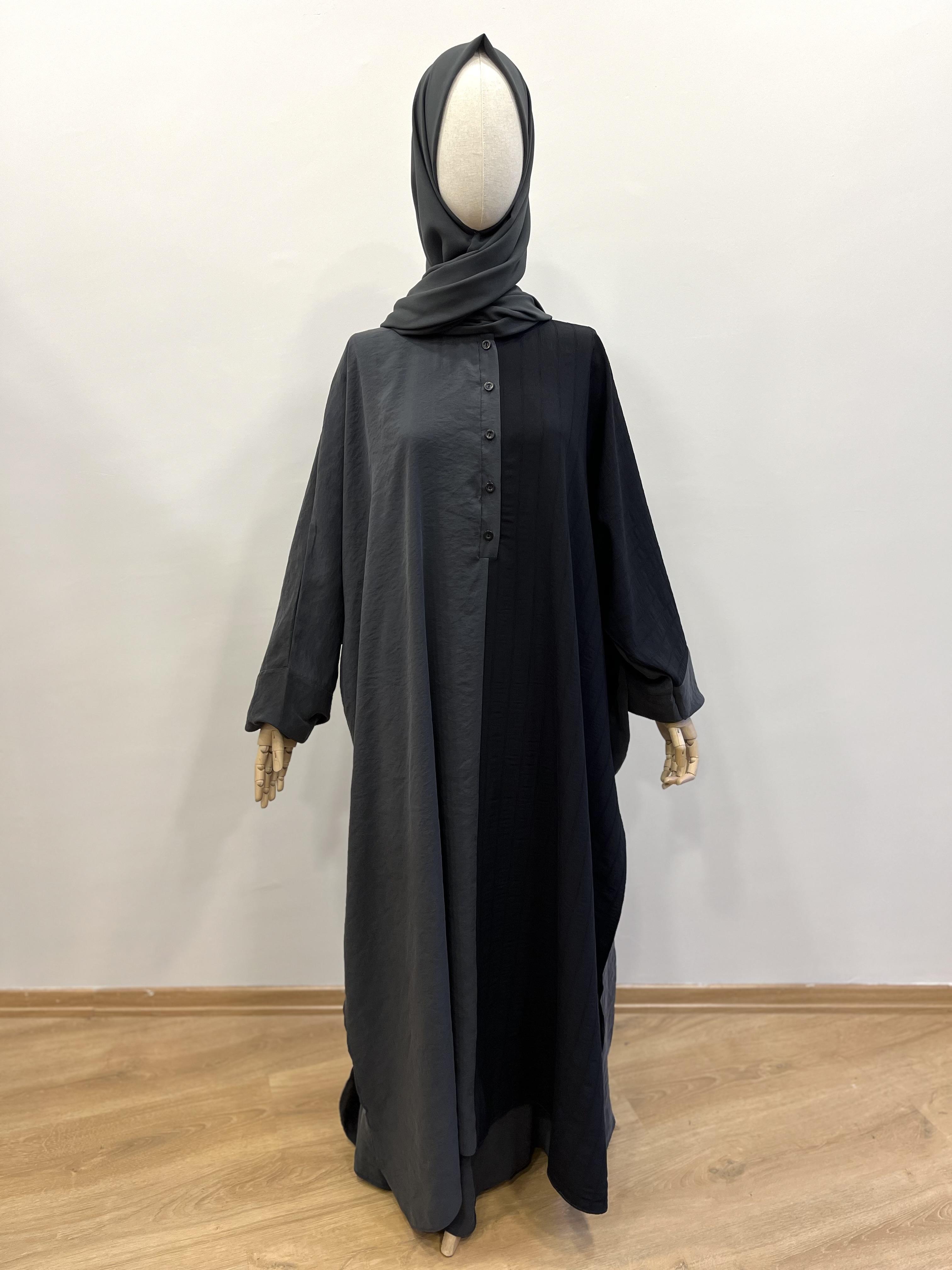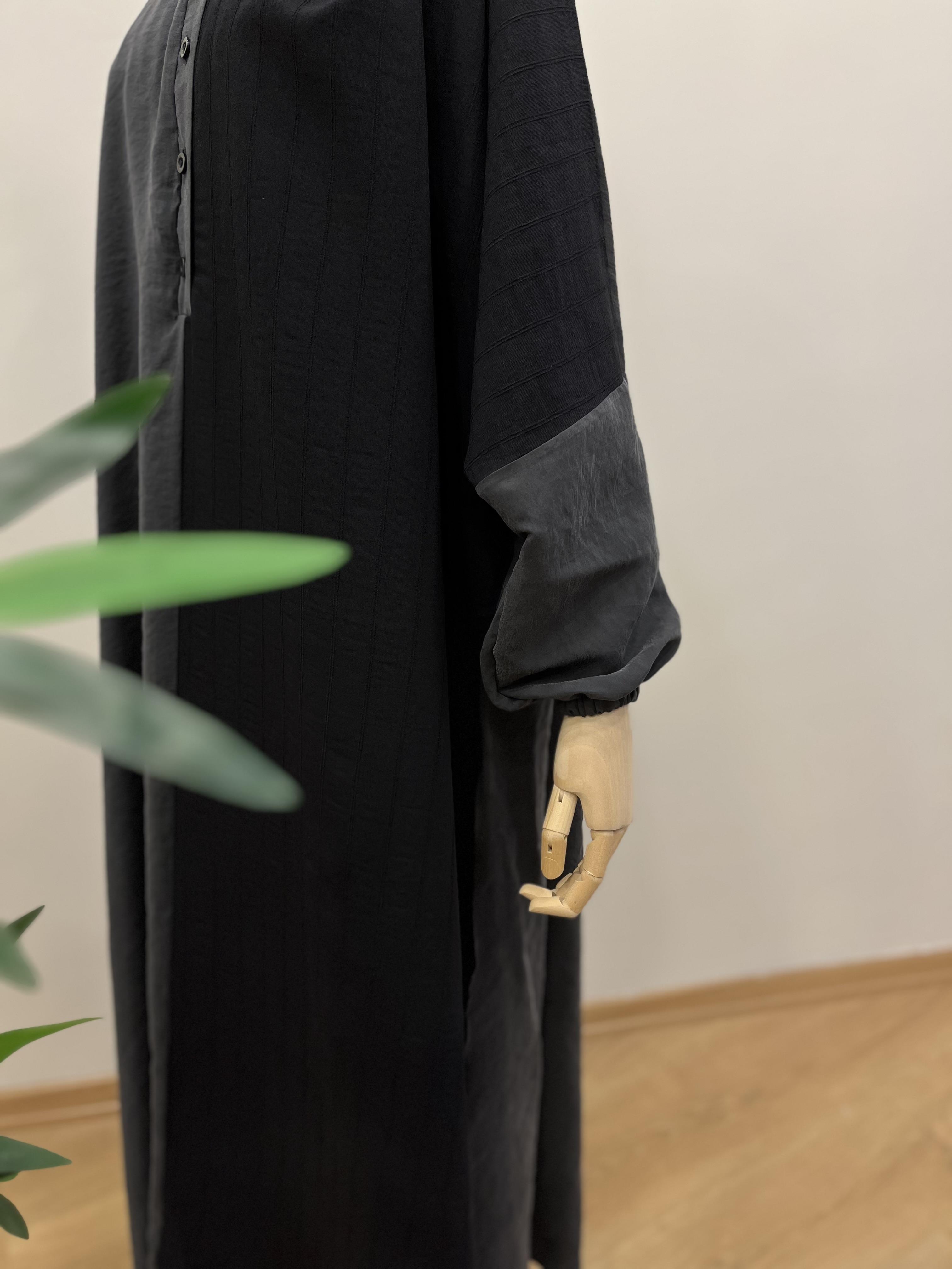 🌟 Lastik kol, yarım boy düğmeli ve yırtmaçlıdır.
