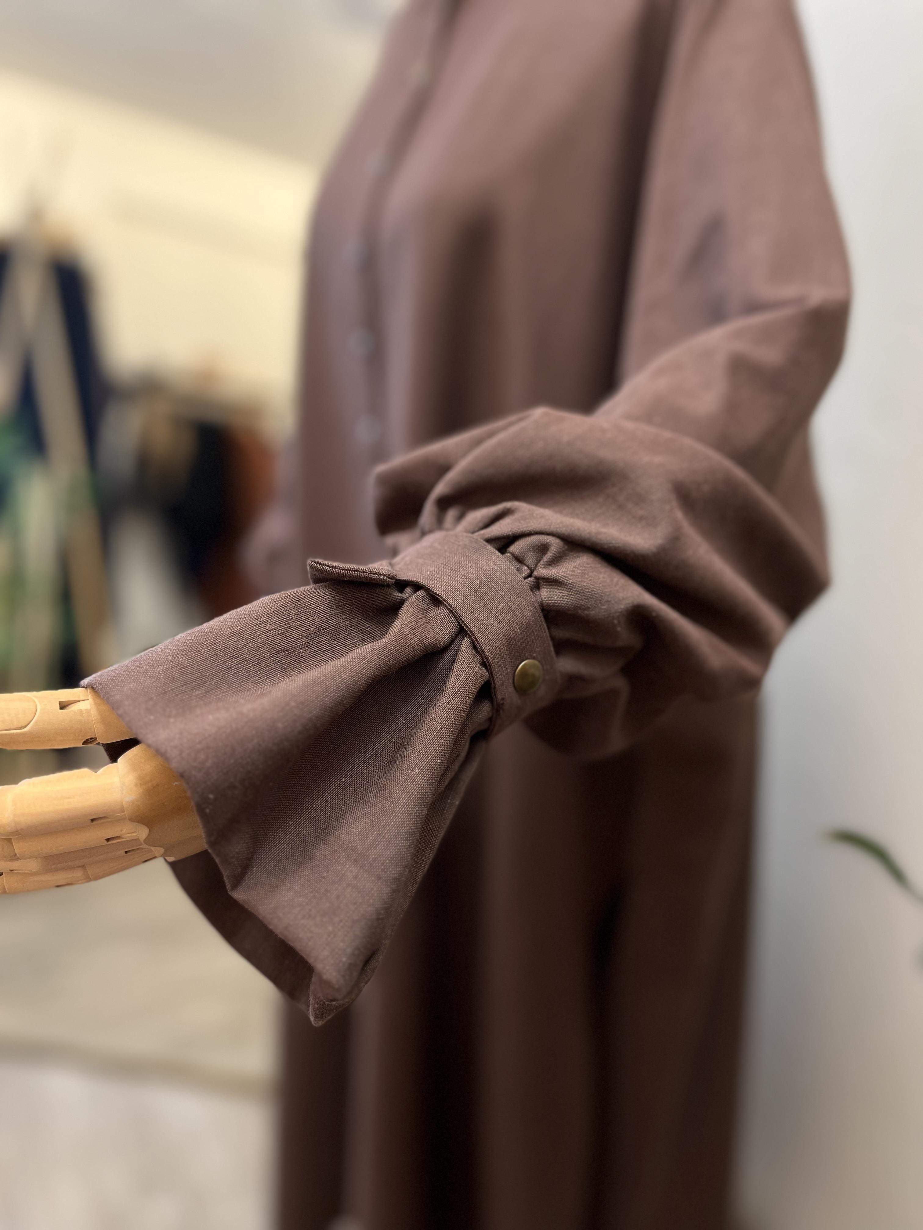 🌟 Yandan yırtmaçlı, yarım çıtlı, bilek ucu lastikli ve çıkarılabilir kordonu vardır.
