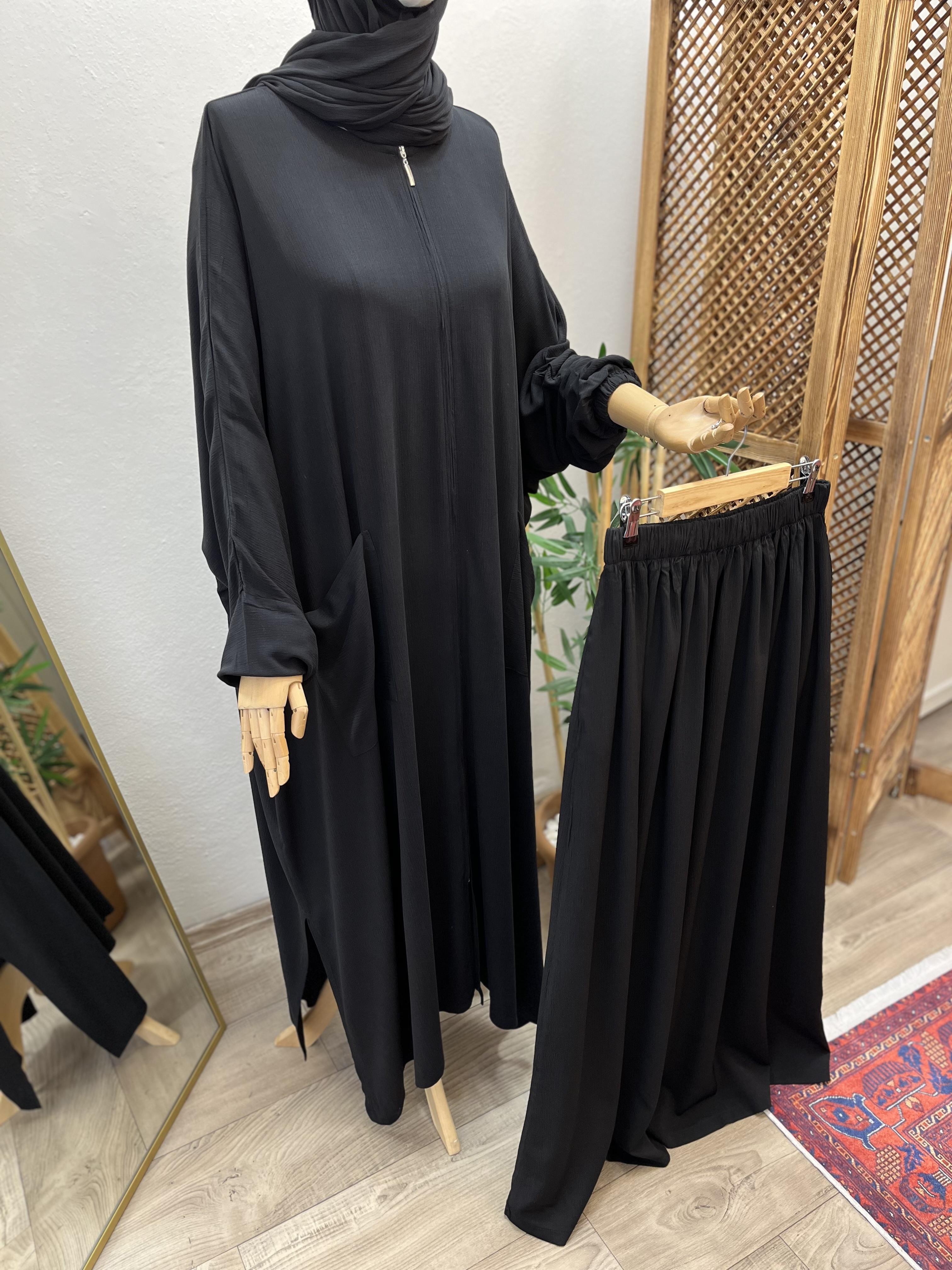 🌟 Yandan yırtmaçlı, bilek ucu lastikli, önden spor cepli ve tam boy fermuarlıdır.