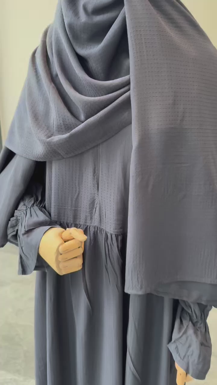 Soft Pamuk Jakar Kendinden Şallı ibadet Elbisesi - Lacivert